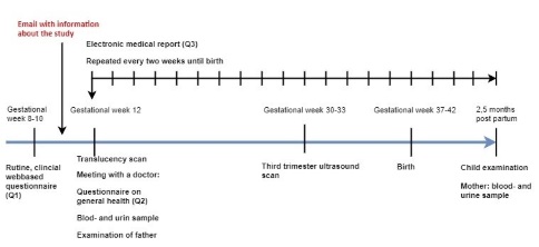 Mothers are recruited early in pregnancy and asked to report biweekly on medicine use through an electronic questionnaire. Blood and urine are collected during pregnancy from the mothers, from their children aged 3 months, and once from the father. Anogenital distance of male and female fetuses will be determined prenatally (by ultrasound) as well as postnatally. Around 3 months of age (during minipuberty) a detailed clinical examination of the child is performed, which incl. assessement of the external genitalia.
